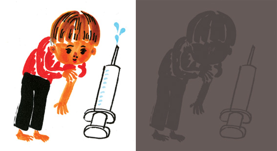 お茶を飲んでいたら年が明けていた。 煙草を吸ってたら1月も終わっていた。 お風呂に入っていたら2月になっていた。 くしゃみをしたら今日になっていた。 鉛筆をにぎったら、もう夜中。次の日になっている。 早いなぁ。ぼくが遅いのだろうか。 このままだと 歯を磨いてるあいだに来年になっていそうだ。 2月18日 夕方、電車にて。 電車の中のものがみんな窓に映ってた。 だから窓のそとに電車の中がもうひとつ並走している。 そとも中もおんなじスピード。のどかだね。 そとの電車内にも自分がこっちを向いて立ってた。 もうすこし姿勢よくしないとモテないだろうか。 ぼくの好きな建物見たいと思ってたらちょうど反対向きの電車がきて 見えなかった。こんなことばっかりだ。 (「アホ」って書いてあるように見える建物。) 鼻息で曇らせてしまった窓が早くもとに戻らないかと思っていたら 駅に着いてた。 2月11日 遅れているアニメーションの仕事に取り組んでいます。 あるていど計画的に進めないと時間がかかる。 この計画的っていうのが苦手なものだから、時間のほうをどうにかしようと 時計を振り返らないと見えない所に置いてみた。 ぼくの首は以前の時計の位置を記憶しているので「あ、ない」と一瞬思う。 それから頭が「場所変えたんだ」と思い、首が「後ろだった」と思う。 腰と首が連携して振り返るが、すこし面倒なので回数が減る。 これがぼくの狙いです。もしかしてけっこう計画的だろうか。 唇は時々、熱いお茶をすすっています。 ![]() 2月8日 今日はすこしお酒を飲んでしまった。 それからデザインの作業。 ぼくはデザインがヘタなので、なるべくデザインしてないという風にみせる作業かな。 それからすこしゲップを。 家から自動販売機までのあいだの鳥のフンの数をかぞえた。 12個あった。ポタリポタリと白くドロップしてやがった。 ジャクソン・ポロックかサム・フランシスか。 2月7日 今はどうか知らないのだけど、ぼくが定期券を使ってた時は 駅名がおっきい文字でどこからどこまでって書いてあったので 例えば横須賀に住んでいると聞いていた人の定期券にほんとに「横須賀〜品川」なんて 書いてあるとやっぱほんとに横須賀なんだ。と、なんだろうか、胸がすこし切なくなった。 みんなそうなのかな。なんとなく横須賀でよかったのに。 賢治のなにかの童話で 教室の窓からお家に入る先生が見えたというシーンがあったのだけど それを思い出すだけでぼくはすごく悲しい。 2月6日 部屋のそうじをしてたら 前に七尾旅人さんの「蜂雀」っていうCDジャケットをかいた時にもらったデモMDがでてきた。 MDの最後に「おまけボーナストラック:宇宙のイネジー」とあり、ぼくが以前に冗談でつくった詩に 七尾さんが歌をつけてくれたのが入っている。激レアだ。でも誰にも聞かせないよフフフ。 イラストのラフと同じで歌のラフにもすごく魅力がある。 ミュージシャンの人もきっとザクッと作ったラフを越えるのに苦労するんだろうな。 今日はずっとルー・リードを聞いてた。 ジャケットの男の人の股間部分が素敵な事になっているのに今日気づいた。 しびれた。 2月5日 パン!セの打合せの帰り、ウキウキしていた(キモイ?)ので 近くのユトレヒトに寄って本をいっぱい買った。 グラフィティとか西海岸っぽいテキトーなドローイングが見たいって言ったら、 おもしろくてかっこいい絵の本をたくさん出してくれた。ありがとう。 電車で立っていたら、コツコツと杖をついたおばあさんがやってきた。 すれ違う時にぼく足の上にも地面と同じようにコツッとついて行ってしまった。 ぼくの足に気づいたかな。足を地面とか段差に思われたのなら、なぜかすこしうれしい。 実際、ぼくの足はその一瞬だけモノとしての演技をしたみたいに硬直した。 2月3日 ばく = バック = BAG = かばん ばく = かばん ばくさんのかばん = かばんのばくさん - アナグラム - かばんのばくさん = んんさばくのかば (最初の「んん」は痰がからんだような咳払いで) 1月25日 仕事して、ギターの練習。それからまた仕事して、ギターの練習。 仕事も絵の練習のようなものだから一日中練習してるみたい。 教育テレビでやっていた、ばくさんのかばん。好きだった。 これを英語にするとバクズバッグだろうか。ロックバンドみたいですごい素敵だなぁ。 好きだったわりにどんな番組だったかまったく覚えていない。 とにかく冒頭のすべり台のシーンだよね。ポップすぎて思い出すだけでまぶしい。 1月24日 最近なんだか夢を見てるみたいにまったりしていたんだけど、 朝からレッド・クレイオラの60年代のライブをいつもより3目盛り分大きい音で聞いたら調子がよくなった。 というか気分は悪くなった。気分は悪いが調子はいいというのもあるんだね。 あと、コーヒーのがぶ飲みね。 1月末にぼくが絵とデザインを担当した「めしもり山のまねっこ木」(作・椎名誠)っていう絵本が 国書刊行会からでます。すごく